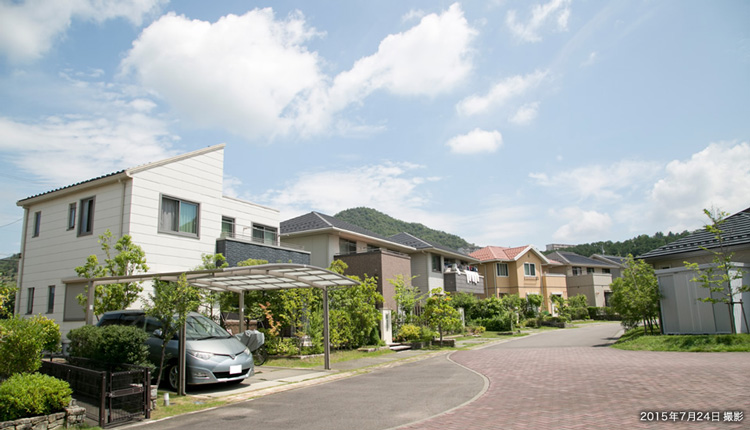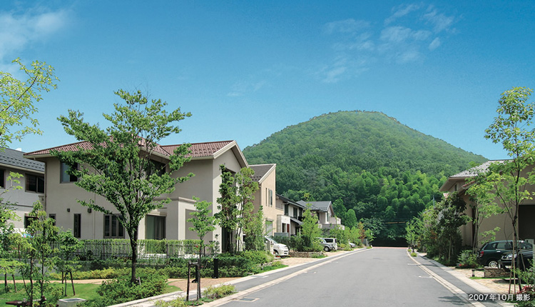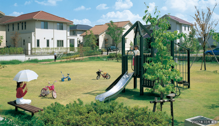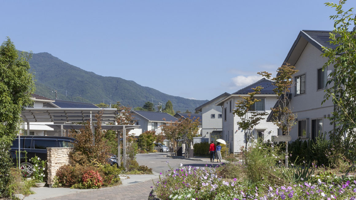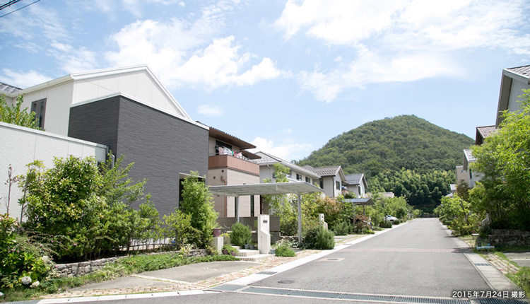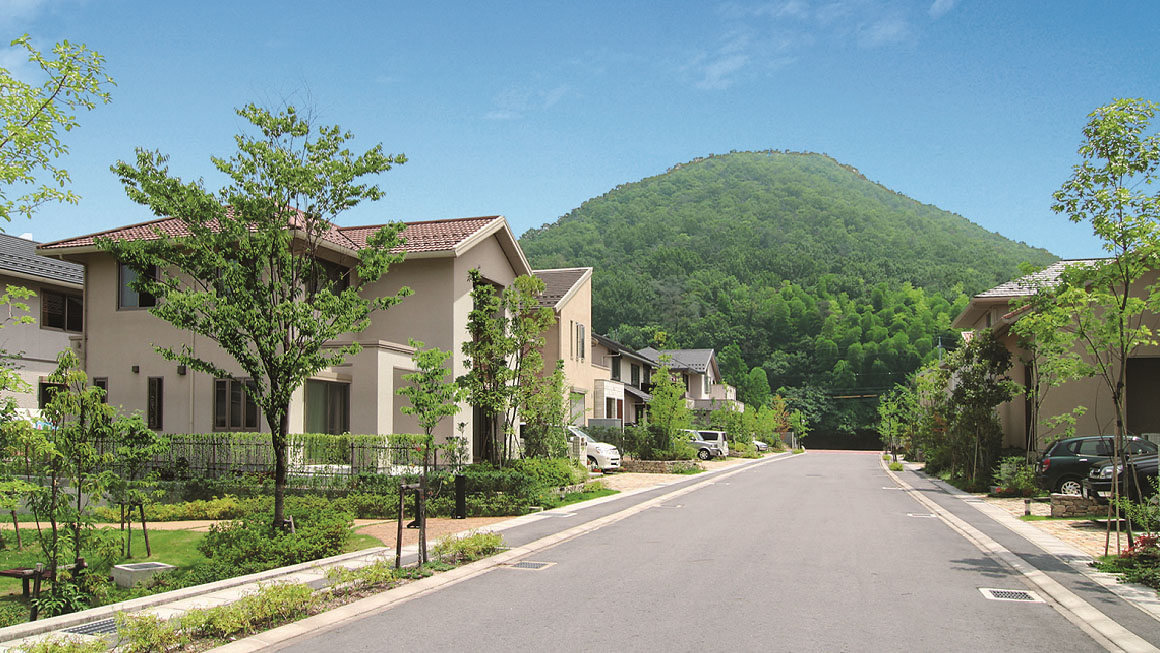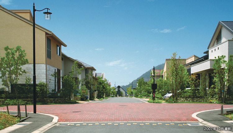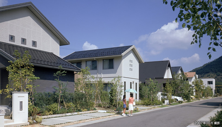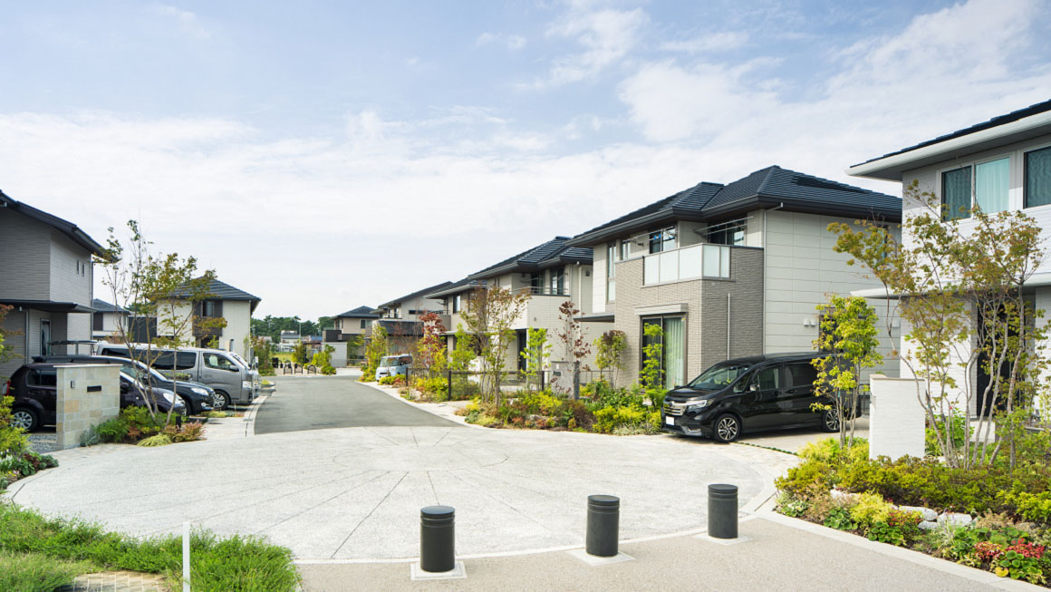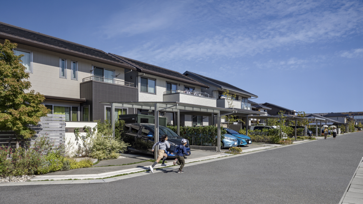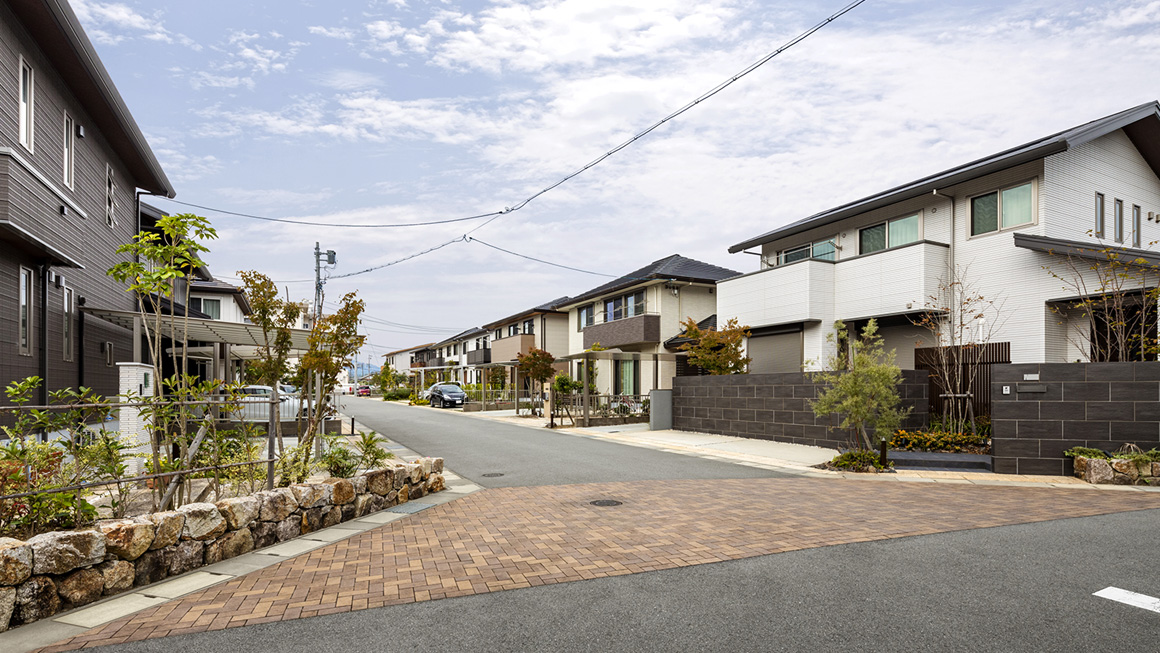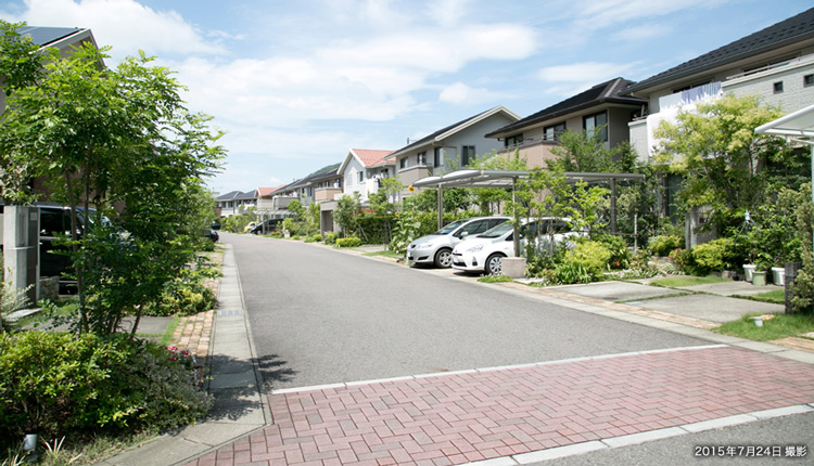 上質な住環境を実現するため外構と植栽のガイドラインを導入することで、緑豊かで調和が感じられる家並みに。住むほどに愛着が深まるまちなみになっています。