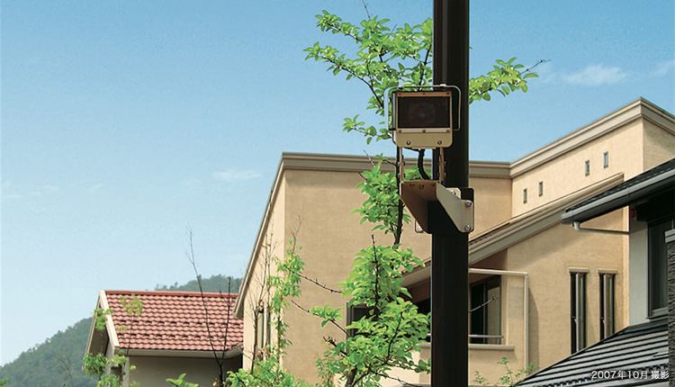 岐阜市街に隣接する「グリーンランド柄山」。積水ハウスが自社造成した104区画の住宅地は周囲の山々の緑が借景となり、緑と光に恵まれた環境です。 街の顔となる入口は、先行外構などでいち早く街の顔づくりに取り組み、高級感を演出しました。街の要所に防犯カメラを設置したり警備会社による巡回サービスの実施、また車の出入口を2カ所に制限するなど街全体のセキュリティを高め、住民の防犯意識も向上しています。