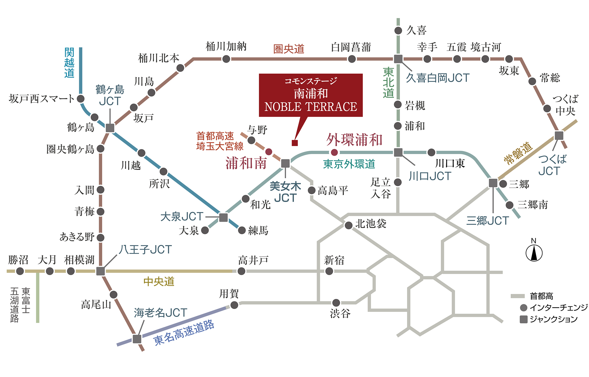 東京外環道「外環浦和IC」と首都高速埼玉大宮線「浦和南IC」から都心や郊外へ。