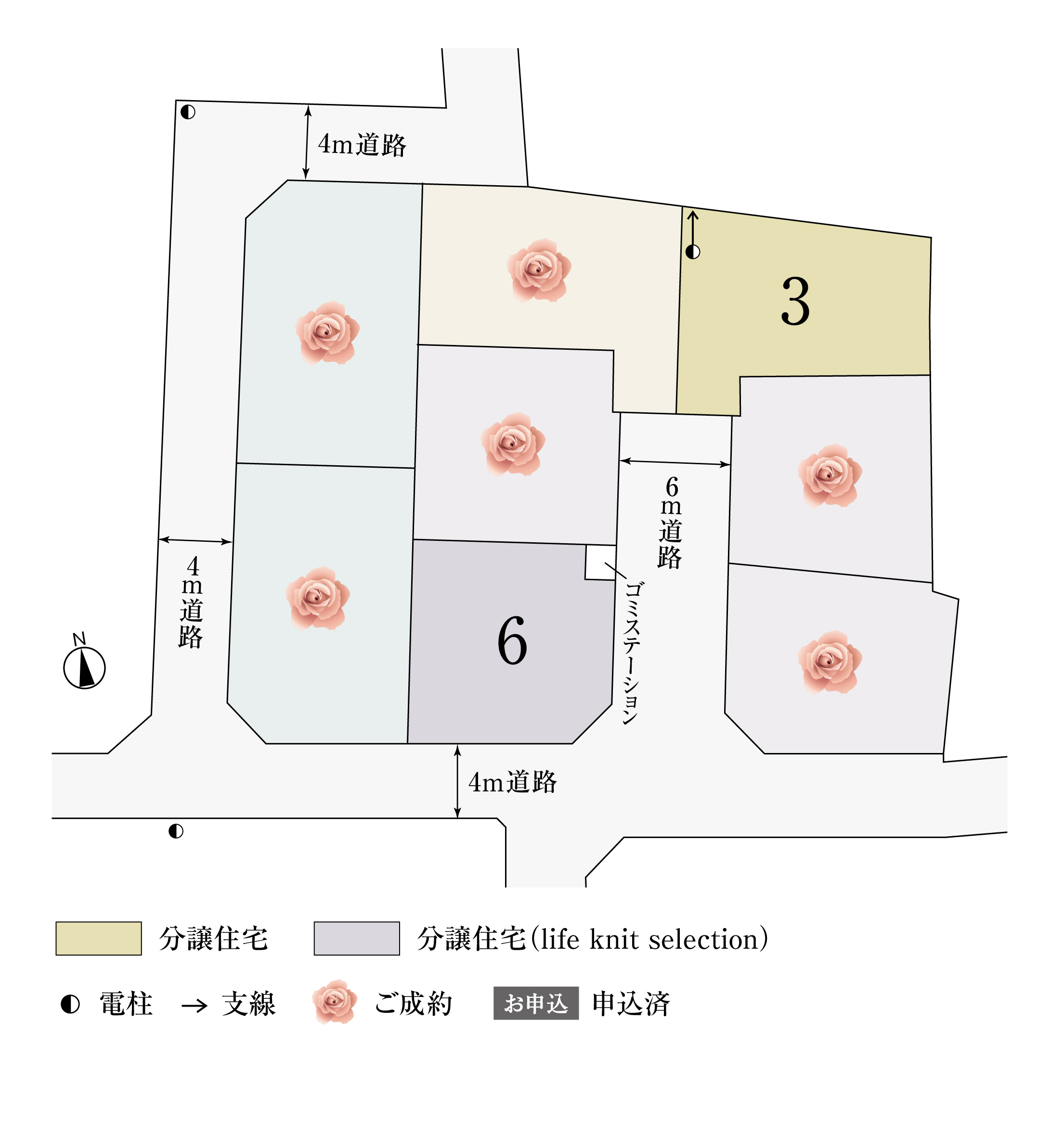 3号棟(右列奥)、6号棟(左列手前)※ご成約済の区画を含みます。