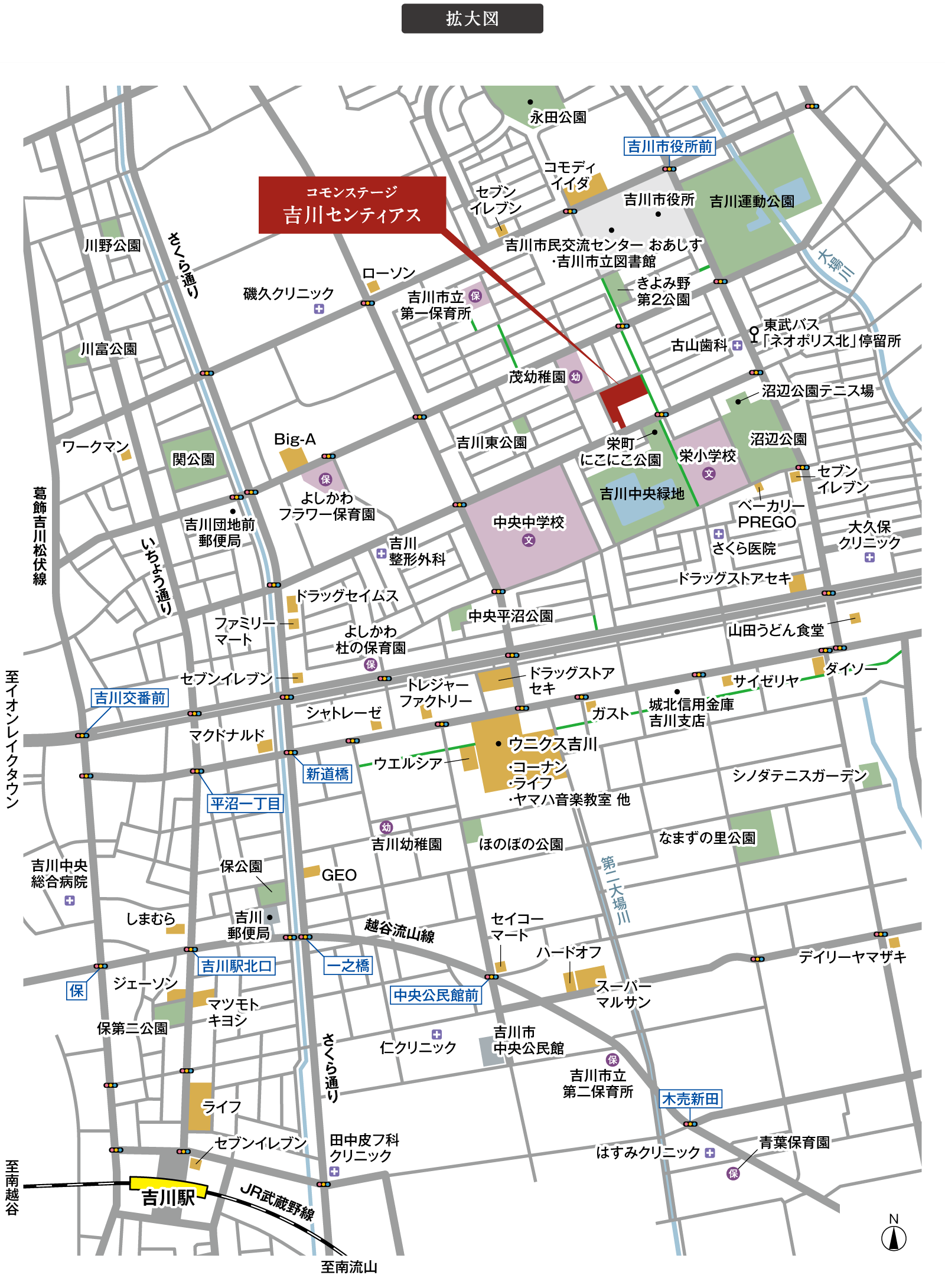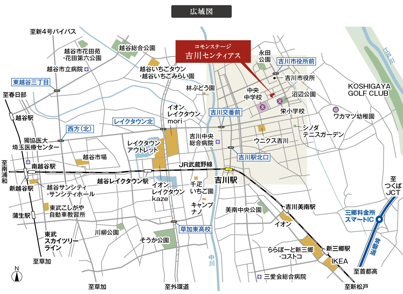 隣接エリアにある「イオンレイクタウン」や「ららぽーと新三郷」「コストコ新三郷」「IKEA新三郷」「イオンタウン吉川南店」など、大型商業施設へのアクセスが良い好立地の街です。