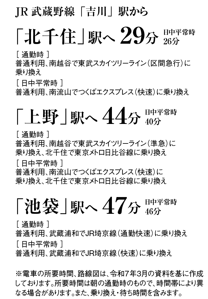 都心へは「南越谷・南流山・武蔵浦和」経由の3つのアクセスで快適につながります。