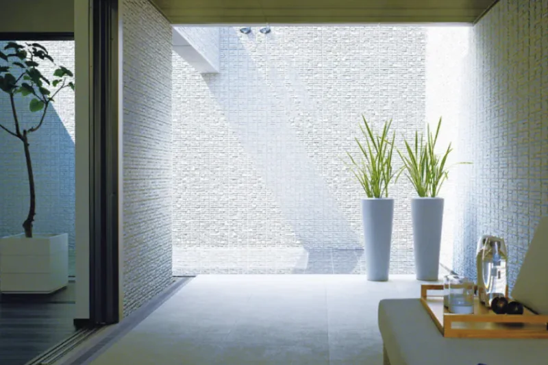 住宅の耐久性や美観に大きく関わる外壁材。積水ハウスでは、長期間にわたり建物の美しさと性能を維持するため、構造別に高耐久の外壁材を採用しています。たとえば、鉄骨住宅向けには、高強度・高耐久を確保した「ダインコンクリート」や「シェルテック・コンクリート」を、木造住宅向けには、焼き物を外壁に用いた陶版外壁「ベルバーン」を用意しています。これらはすべて耐久年数60年以上です。