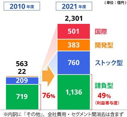 2010年度と比べ、2024年度売上高は約2.7倍、営業利益は約5.8倍へ成長。