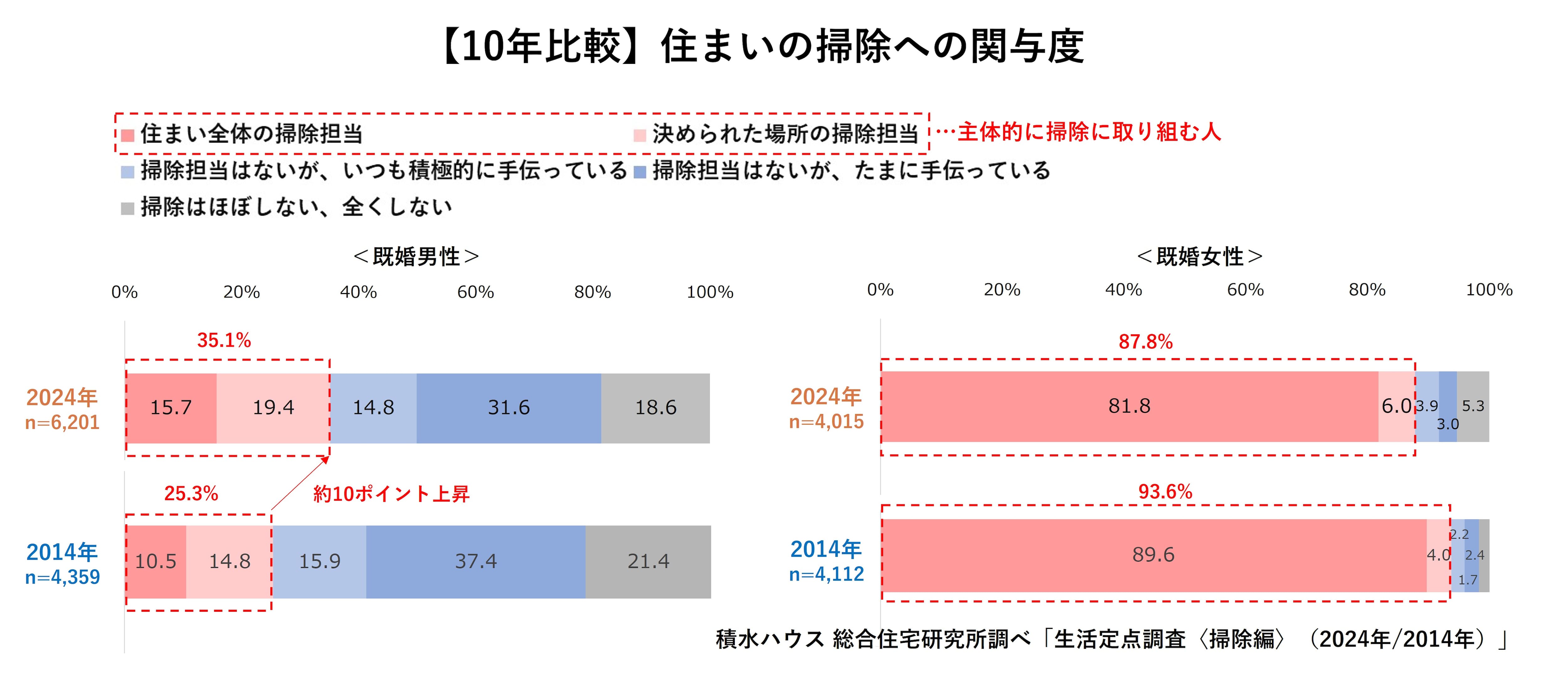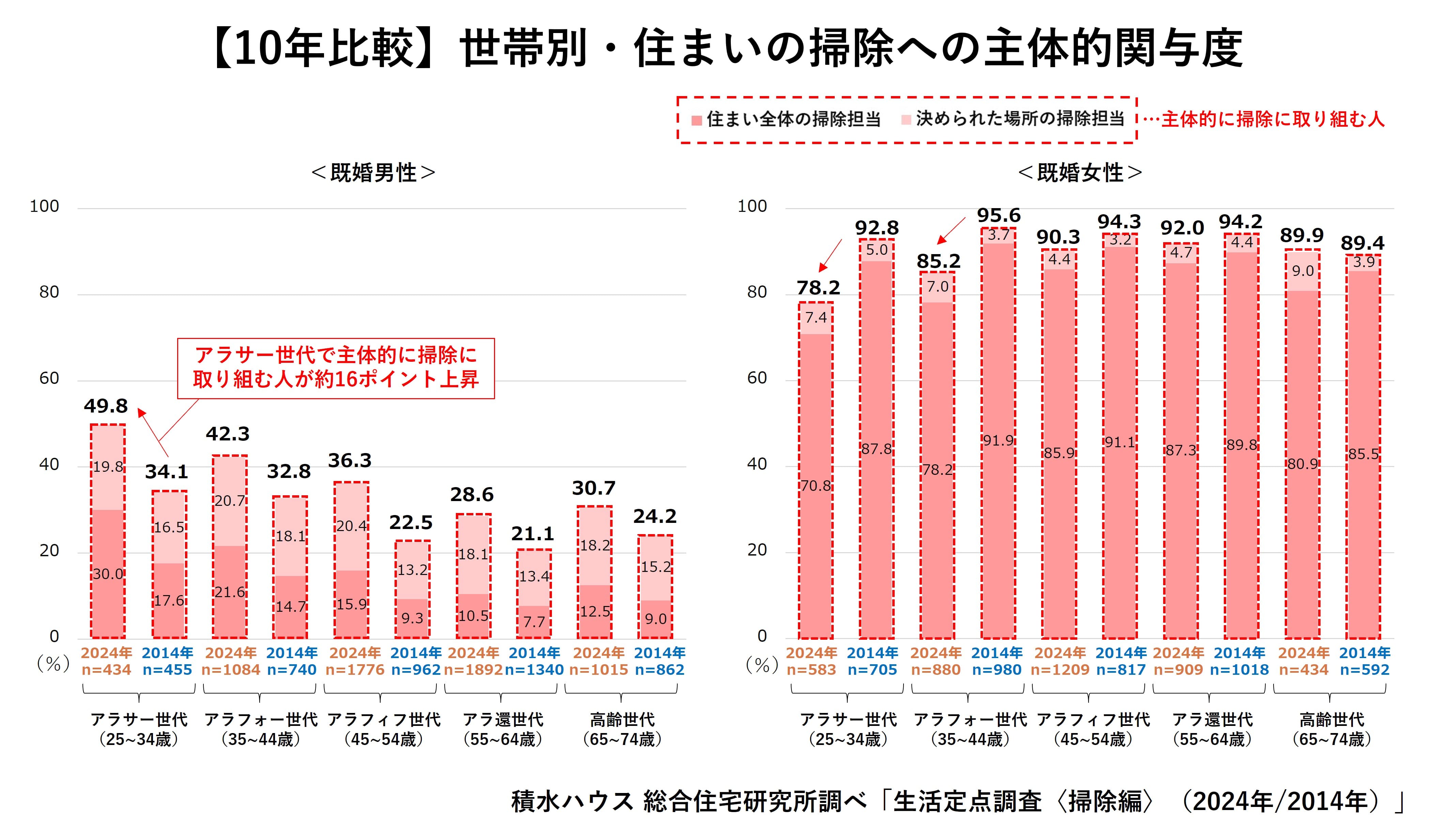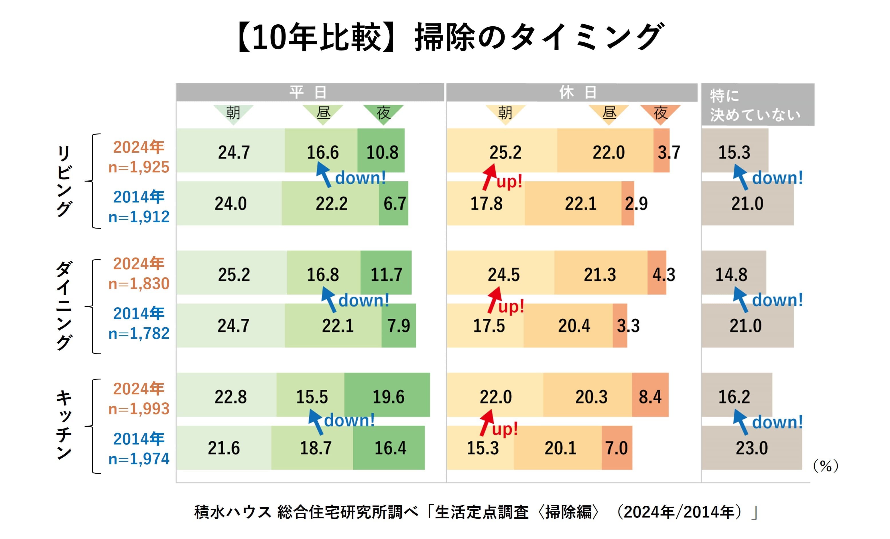 ・引用元が「積水ハウス株式会社 総合住宅研究所」による調査である旨と、引用元調査「生活定点調査〈掃除編〉(2024年/2014年)」の記載をお願いします。