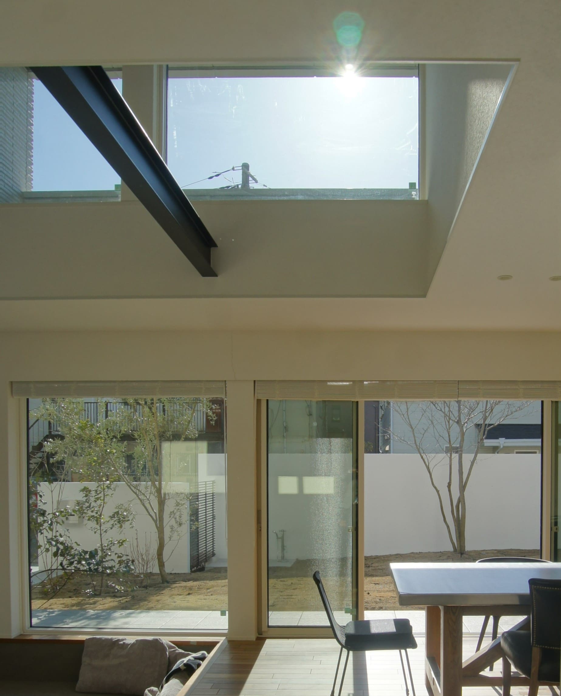 W邸の場合、横幅約7mもの大きな窓があるほか、南北にバランスよく窓が配置されていて、風の通り道を確保しています。このように、仕切りや建具の少ない間取り、適切な窓の大きさや配置と開閉によって、広い空間においても風通しの良い住まいが実現できるのです。また、住まいの断熱仕様は時代とともにレベルアップしています。窓や壁の断熱性能を高めることで、大きな窓や大空間の開放感と高い空調効率を両立でき、電気の効率的な利用にもつながりますね。