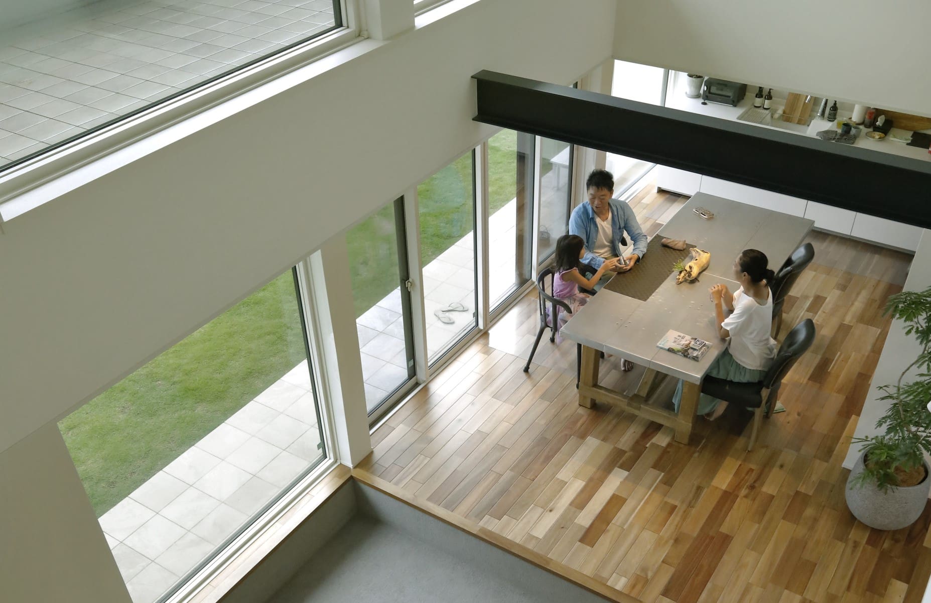 普段の生活においても、大きなダイニングテーブルは、夫婦が仕事をしたり、子どもたちが宿題をしたりと、自然に家族が集まる場所となっています。