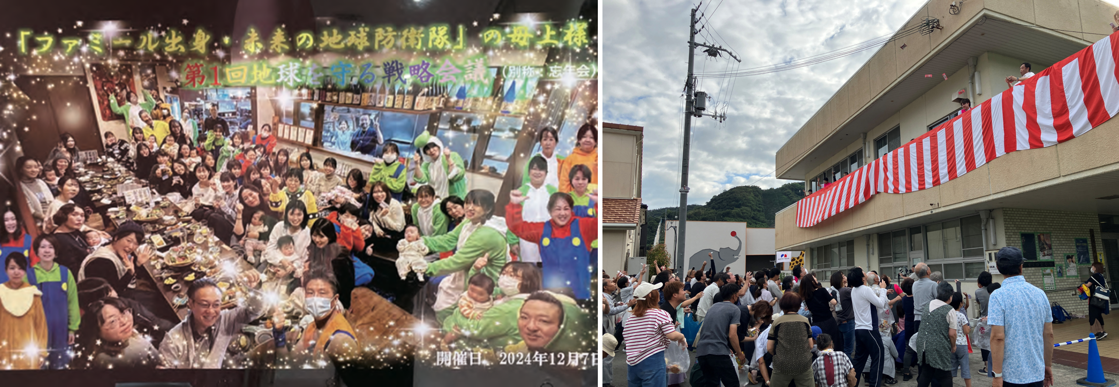 (左)スタッフが企画し、お産したママたちが大勢参加し、大盛況だった忘年会