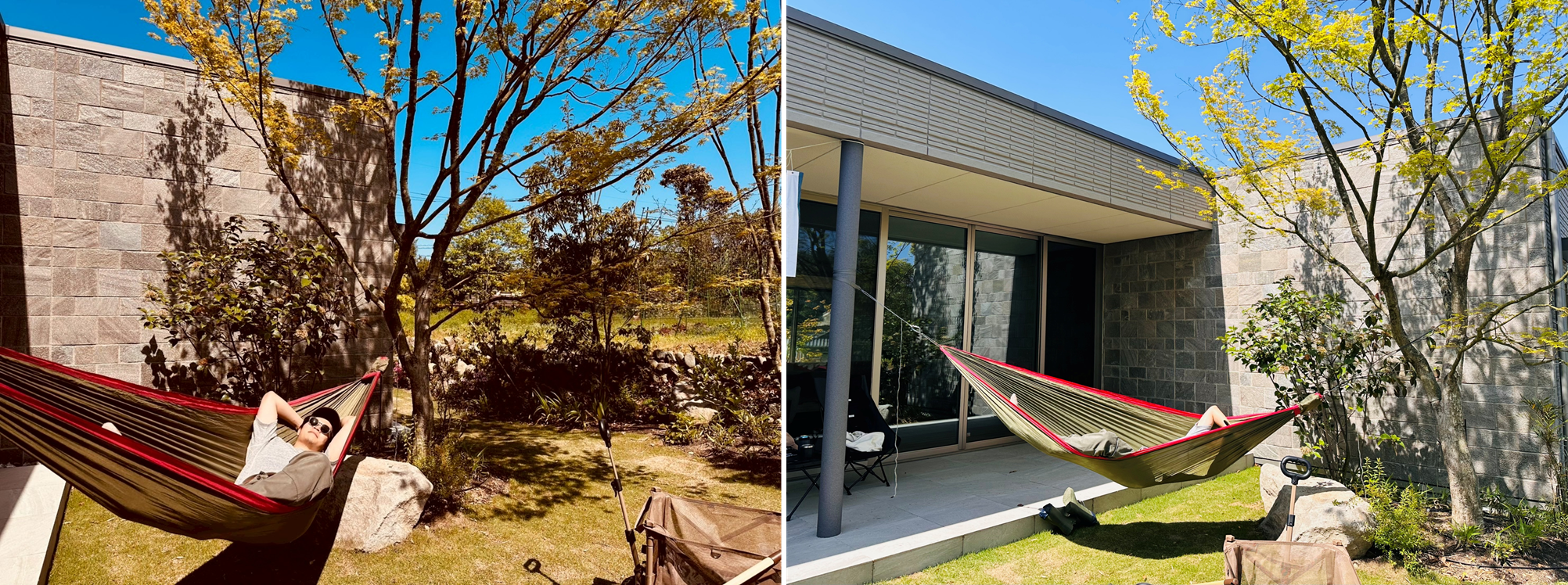 ハンモックでくつろぐ夫のK様