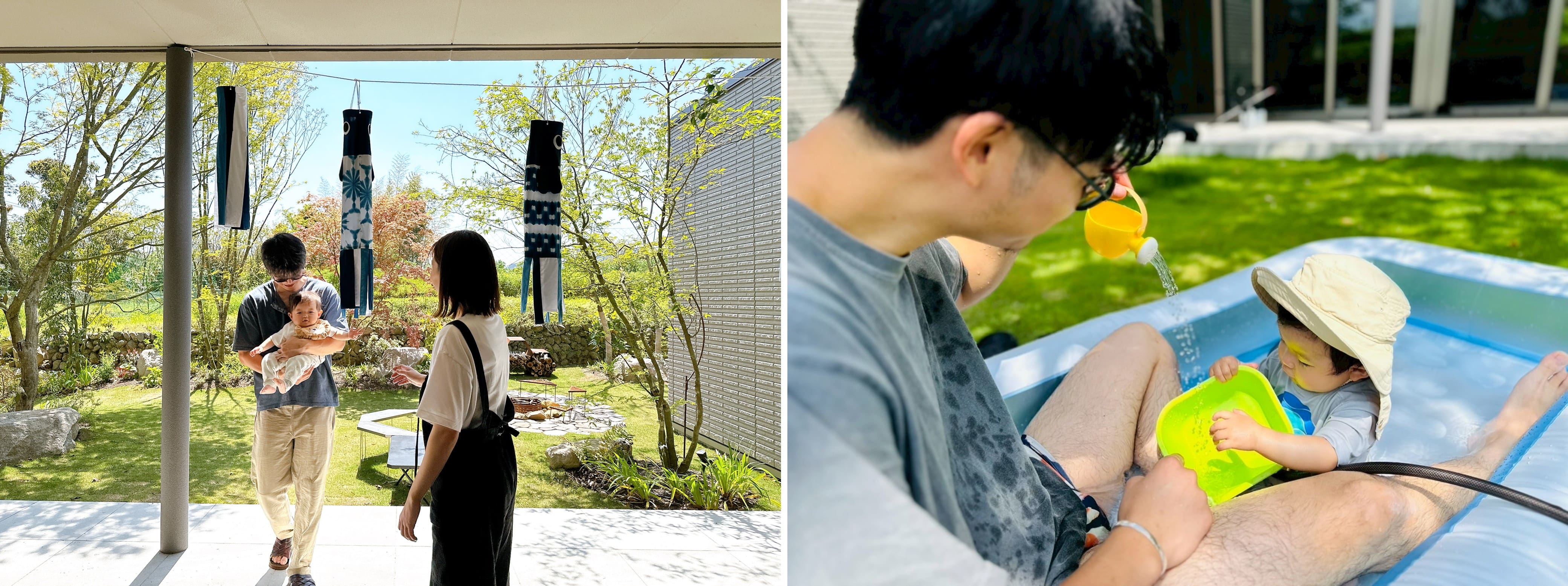 Dくんには、緑の中で育って欲しいとの思いから、成長とともに一緒にいろいろな体験ができるようにと、敷地内には、家族で楽しめる畑もできました。露天風呂も計画されているそうです。