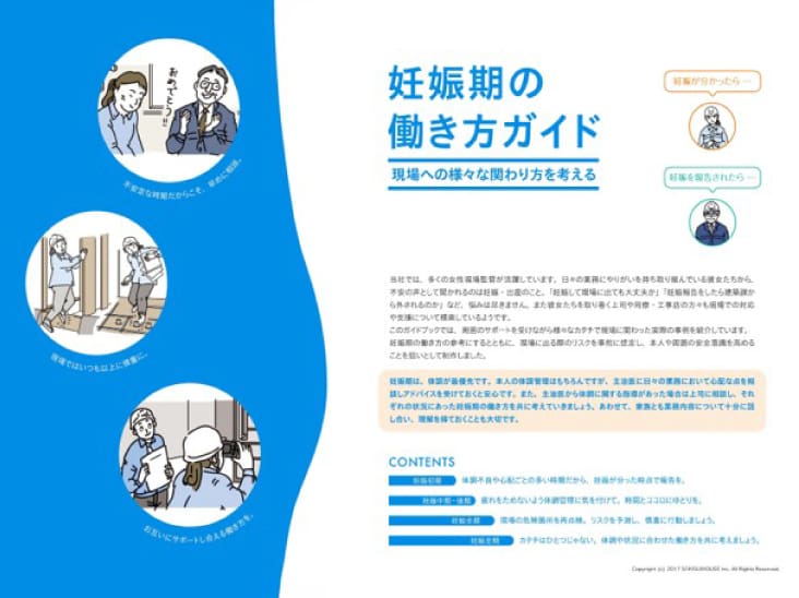 現場で働くすべての人が働きやすい環境を整えるため、施工現場の仮設トイレの改善にも取り組み、職場環境の改善やニーズへの対応を行いました。出産や育児との両立支援として、本人と上司への情報提供を目的とした「妊娠期の働き方ガイド」の作成や、マタニティ仕様のユニフォーム貸与などの支援を行い、定着率の向上に努めたことで、現在では98名の女性現場監督が活躍しています。さらに、現場監督のマネジメントを行う建築長・専任監督長にそれぞれ1名、それを補佐する副建築長に4名の女性が登用され、現場監督のトップランナーとしての社内認定制度であるチーフコンストラクターには11名の女性が認定されています。