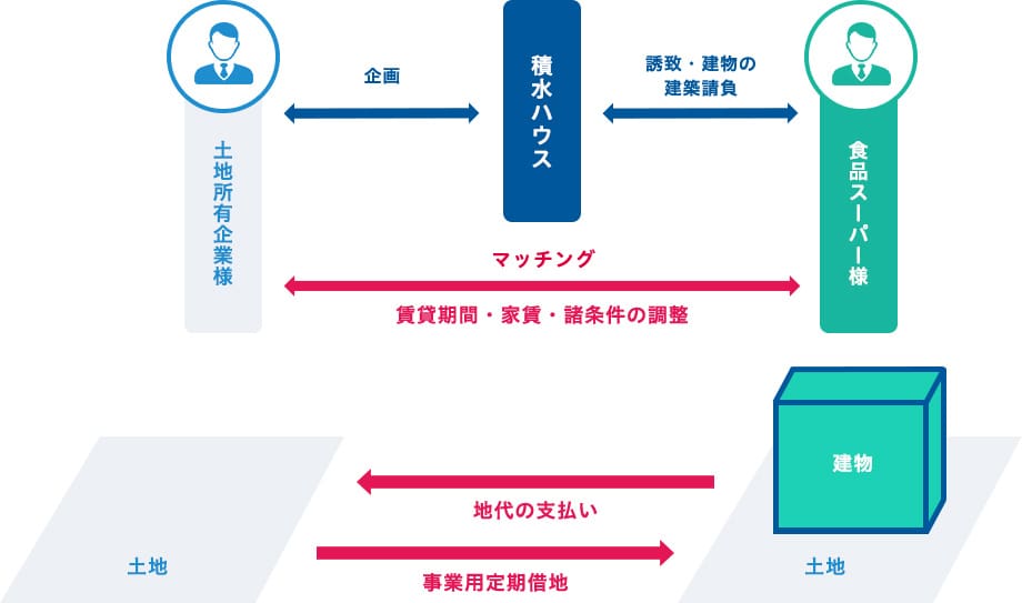 事業用定期借地権による食品スーパーの店舗建築