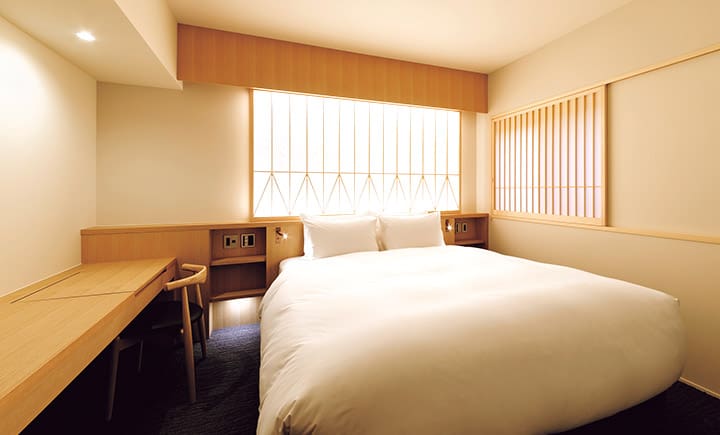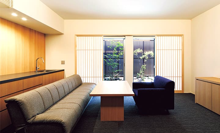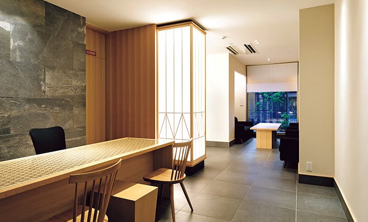 - ・外観は、宿泊者が非日常を感じられる雰囲気と京都のまちなみに調和する和風デザインをご提案。内装にも、こだわりの設備・家具を配置。トータルでホスピタリティを高めた。
