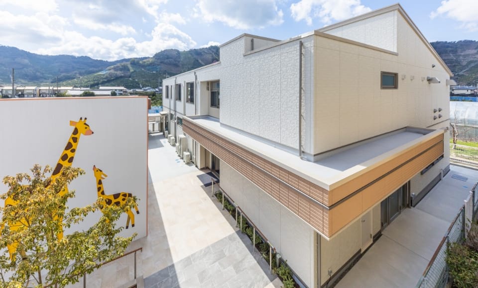 - ・旧保育所跡地に整備を計画。外来棟は保育所のシンボル的存在の壁画を残し、積水ハウスグループ会社の鴻池ビルテクノが旧舎をリノベーション。分娩・入院棟は積水ハウスが新築。全体の基本設計は積水ハウスが行い、2棟一体の産院として整備を進めた。
