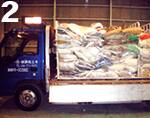 標準化された積載方法の回収物が、手際よく短時間で降ろされていきます。