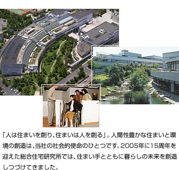2005年8月には、この総合住宅研究所への来館者が50万人を突破。このうち約4割が住まいづくりをご計画のお客様で、残りの6割は、学生や行政、地域住民など一般の方々です。今後も、住まい手に開かれた研究所として大きな役割を果たし、変化しつづけるライフスタイルに迅速に対応し、住まい手とともに歩める施設であることを約束します。