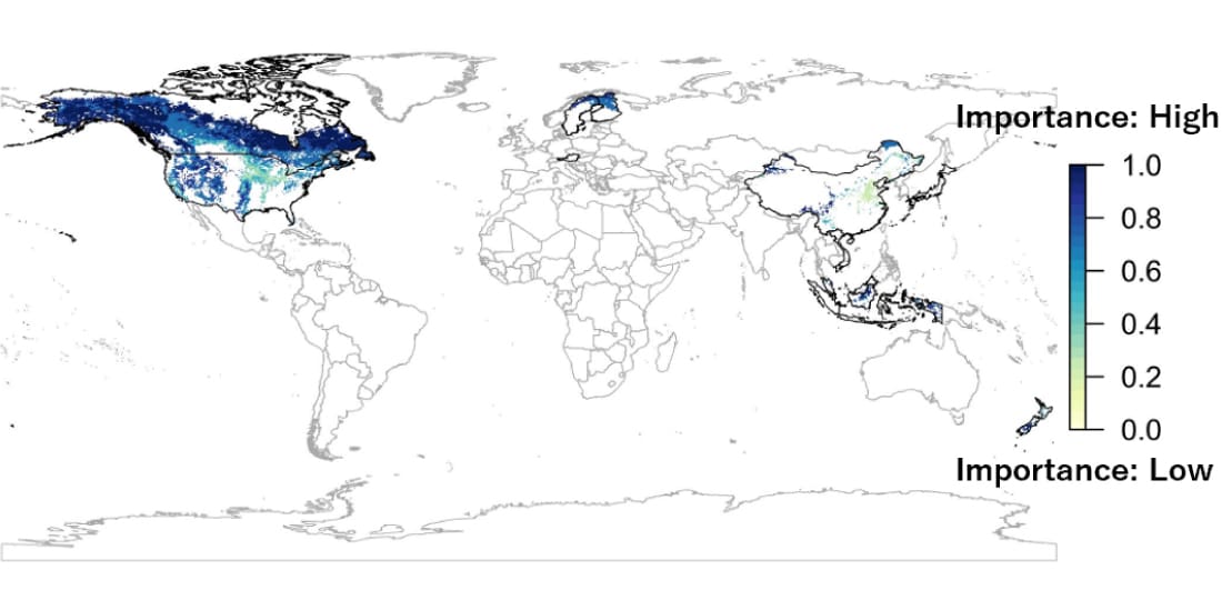 Note: The biodiversity importance score is a relative representation of the importance of each location from 0.0 to 1.0, with 1.0 being an area of land with utmost importance to the world’s natural environment and 0.0 being an area of land that has lost all importance as a natural environment.