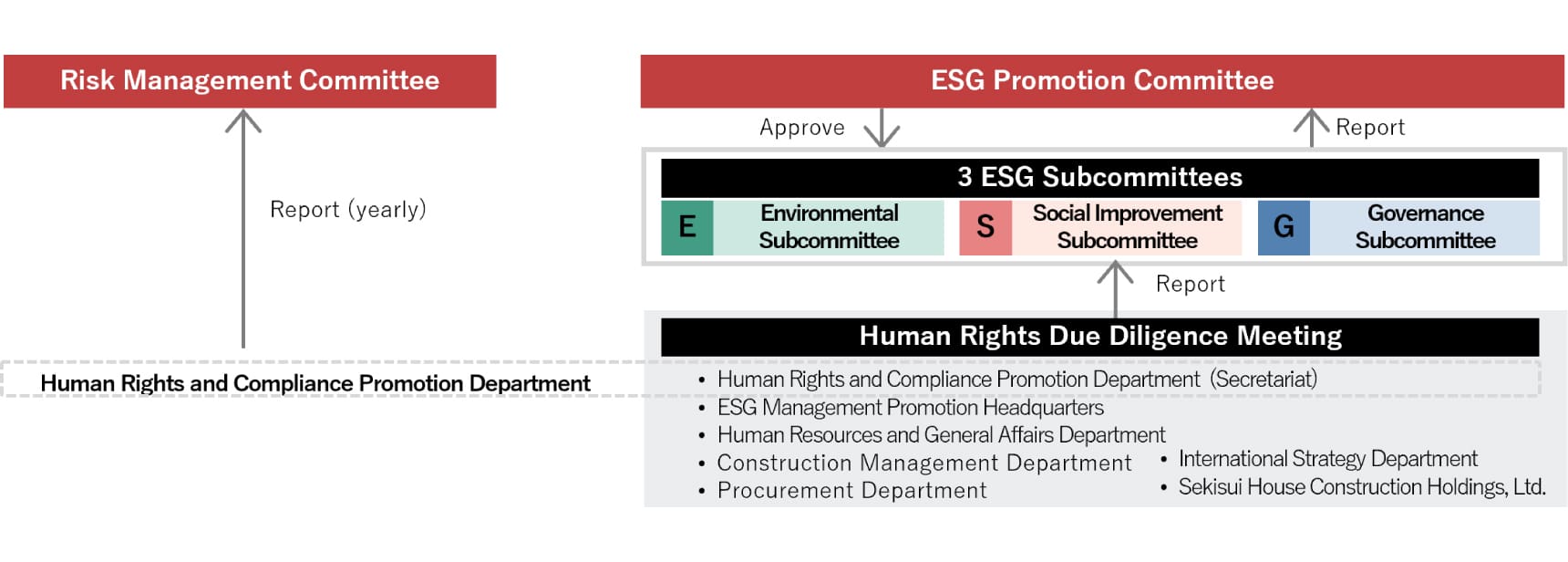 Additionally, we have established the Human Rights and Compliance Promotion Department within the Sekisui House as a dedicated department for overseeing human rights.