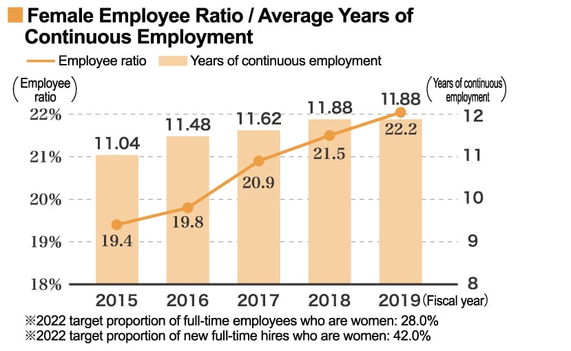 We have positioned Diversity and Inclusion Promotion as a management strategy, and the results of our pioneering initiatives can also be shown numerically. These initiatives are helping to make Sekisui House a more vibrant organization that continues to grow.