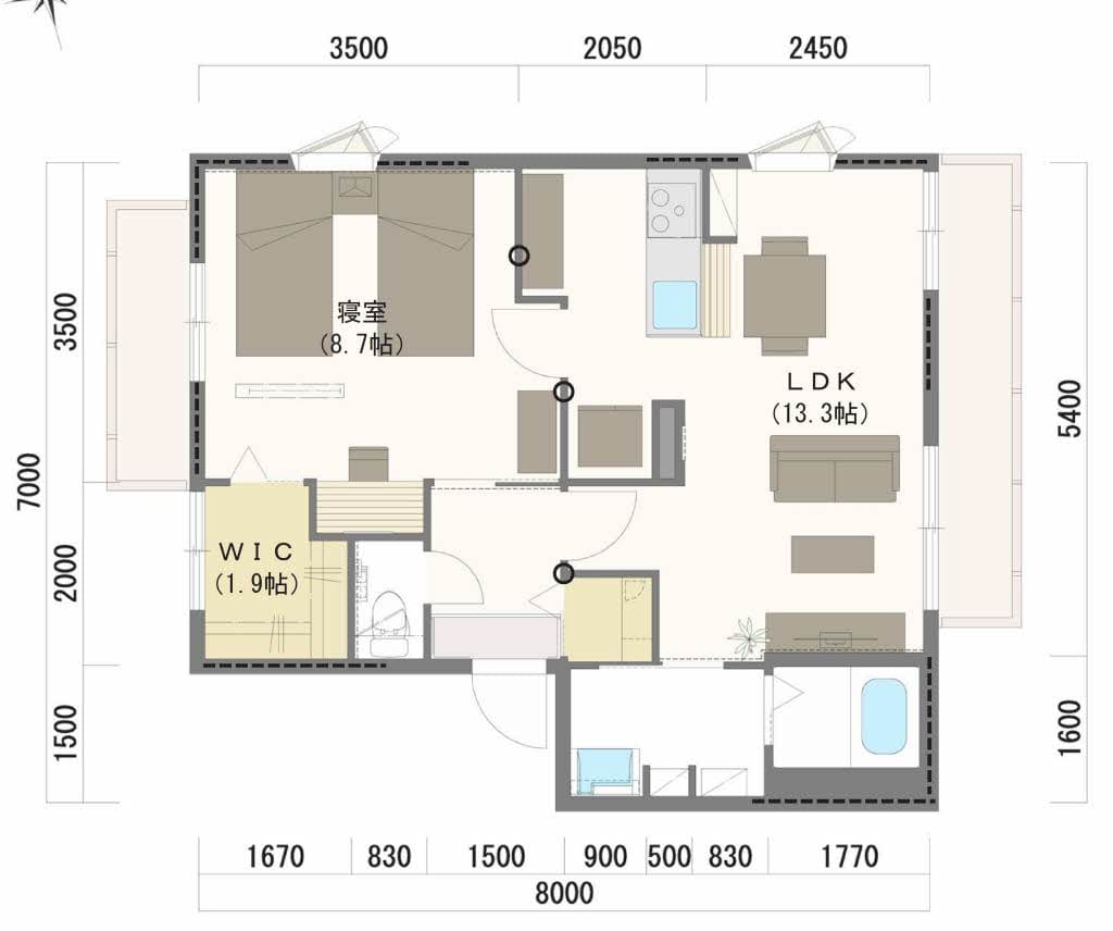 3DKから需要の多い1LDKへリノベーション。 LDKは13帖を確保。対面キッチン、WIC、シューズクロークも設け、入居者が求める快適な暮らしを実現。 さらに内窓も設け省エネ性能も強化。