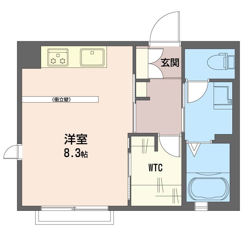衝立壁によりキッチンを目隠ししつつ、居室の家具配置性を向上。キッチンは1500⇒1800へ大幅サイズアップ。キッチン拡張に伴い新たにレンジ台スペースを新設。ダクトレール照明を採用しインダストリアルな雰囲気に。