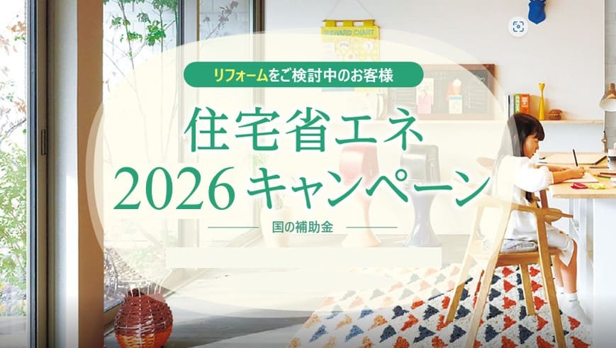 11月末に閣議決定された補助金制度「住宅省エネ2026キャンペーン」を利用してお得にリフォームするチャンスです。