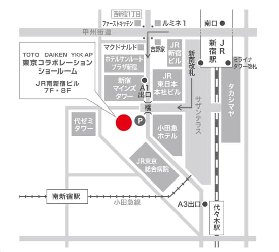 ※お車でお越しの場合はJR南新宿ビルの地下駐車場(有料)をご利用ください。