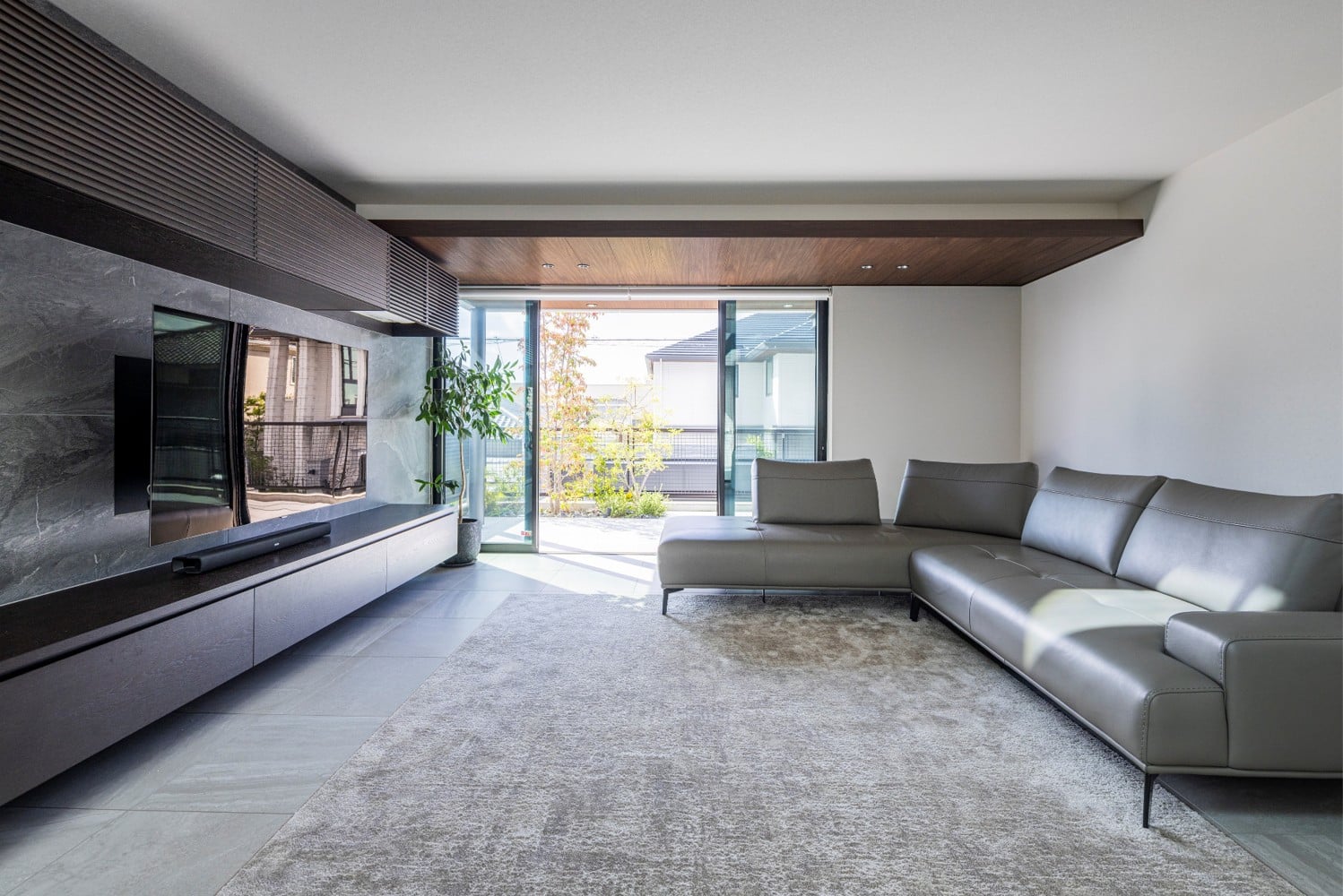 インテリアはホテルのような上質感を演出し、毎日の暮らしに落ち着きと開放感を両立させました。