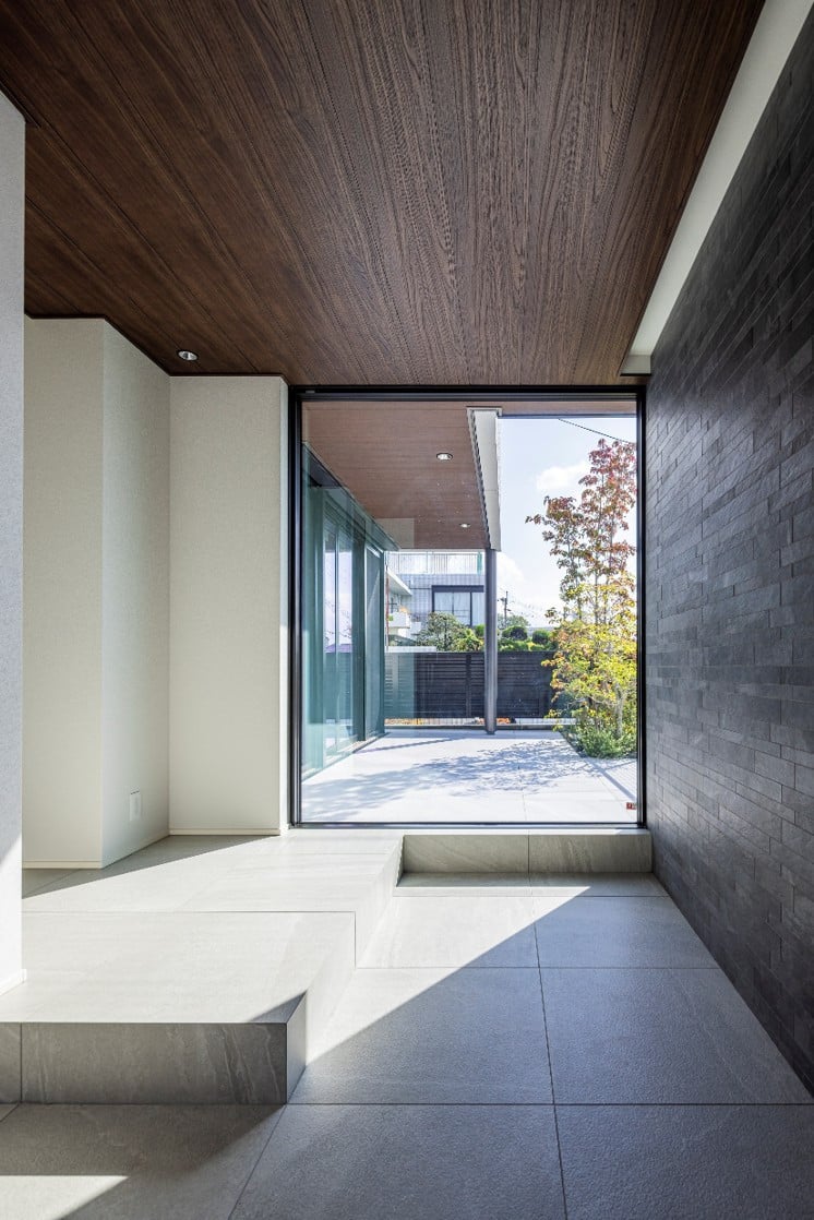 高台に建つこの住まいは、道路との高低差を生かした設計で、プライバシーを確保しながらも光と風をたっぷりと取り込める心地の良い空間です。