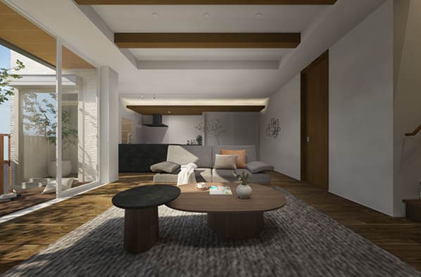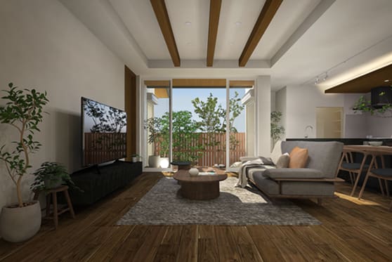 ・リビングの空間の高さとインテリアを演出するシャーウッドのあらわし梁