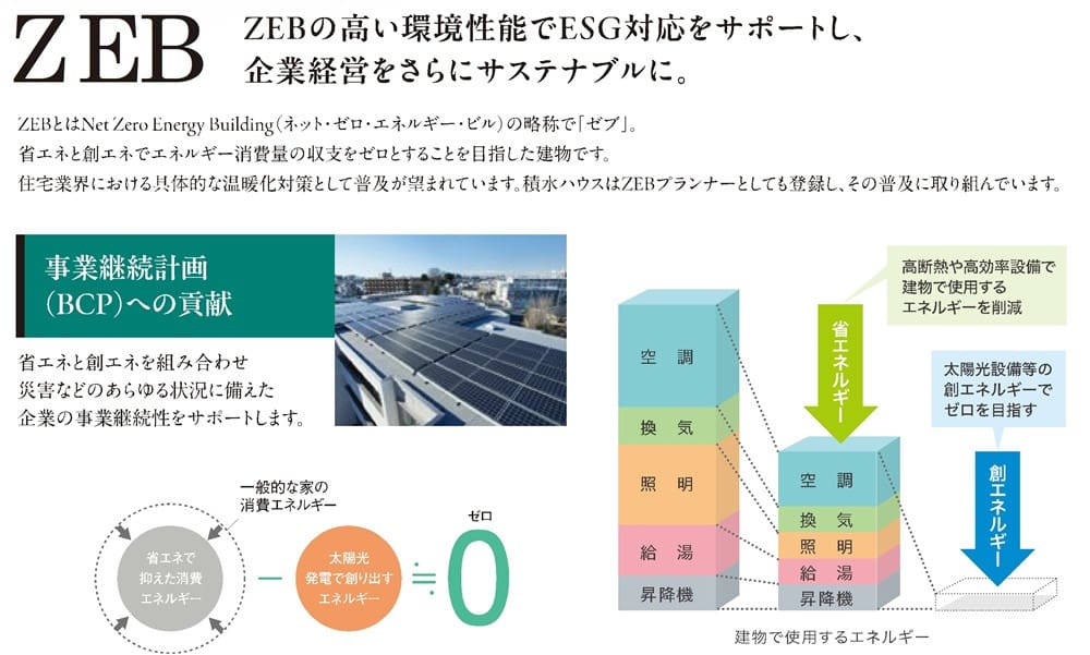 ZEBの高い環境性能でESG対応をサポートし企業経営をさらにサステナブルに。