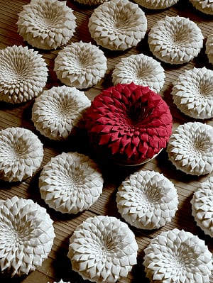 会場にはTVにて密着いただき、秋の知恩院のライトアップ展示で発表した新作の真紅の花を展示いたします。