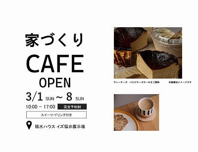 3/1(日)~3/8(日)の期間限定で、イズ展示場に「家づくりCAFE」がOPEN!