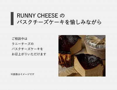 ご商談中はラニーチーズのバスクチーズケーキをお召し上がりいただけます