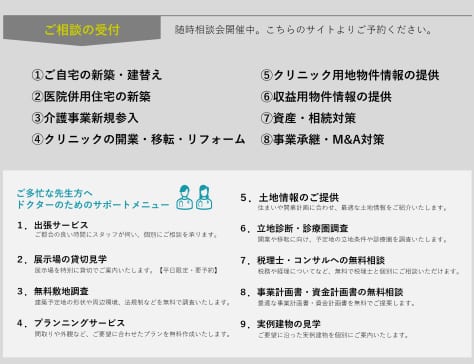 ご自宅の新築・建替やクリニック開業等にぜひご活用ください。