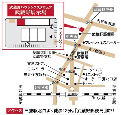 武蔵野ハウジングスクウェア内 イズ武蔵野・吉祥寺展示場 (JR三鷹駅より徒歩12分、バス乗車3分・バス停「保健所前」よりすぐ)