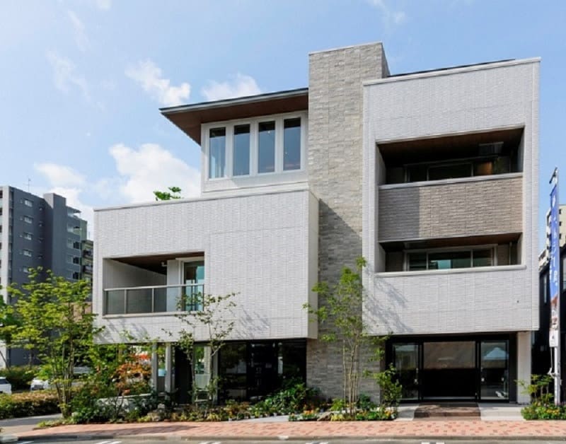 4階建て店舗賃貸併用二世帯住宅の展示場です。