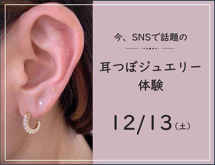 今回は専門セラピストをお招きし、1日限定で耳つぼジュエリー無料体験を実施いたします。