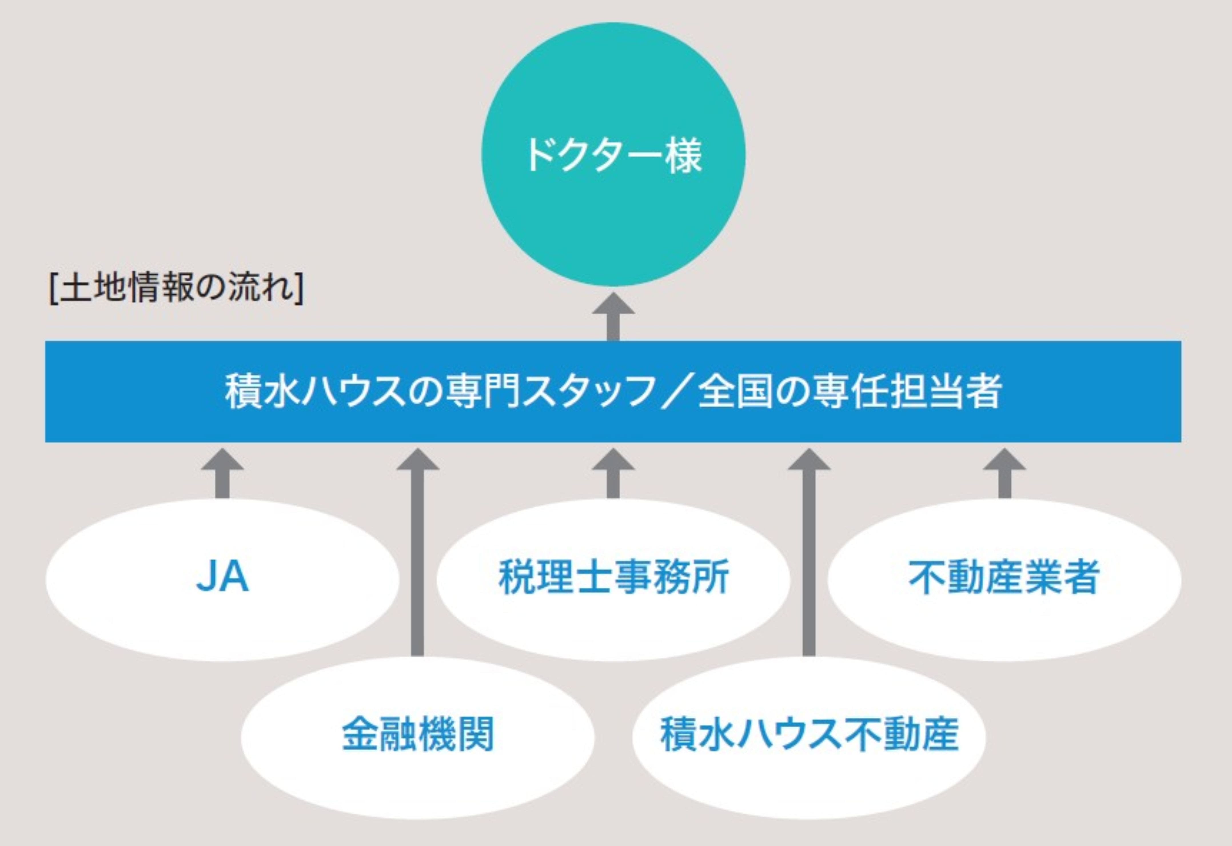 全国の専任担当者を通じて、ドクターのご希望に沿った土地情報をご紹介します。