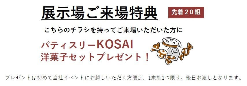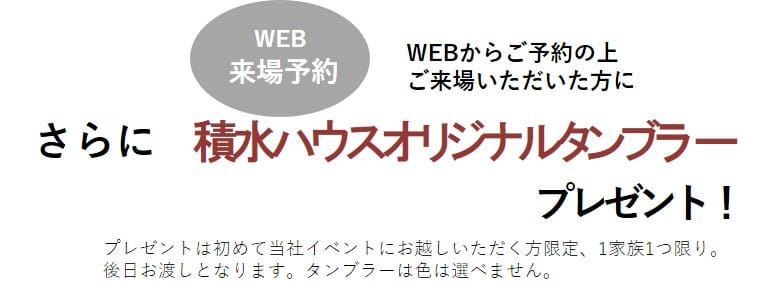 ただいま展示場にご予約の上、ご来場いただいたお客様へ、