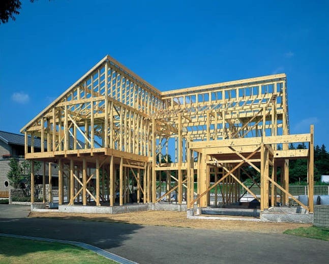 品質・高強度を実現した構造用集成材を採用。MJ接合システム、基礎ダイレクトジョイント、設計の自由度を高める高倍率の耐力壁などにより広い開口部などを実現する構法です。