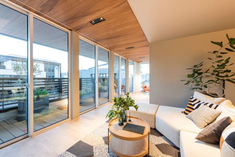フルフラットバルコニーとクリアビューサッシで屋外へと気持ちよく繋がる開放空間。