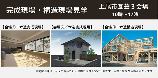 木造完成現場・鉄骨完成現場・木造構造現場、一度に3会場ご見学いただけるのはここだけ!!