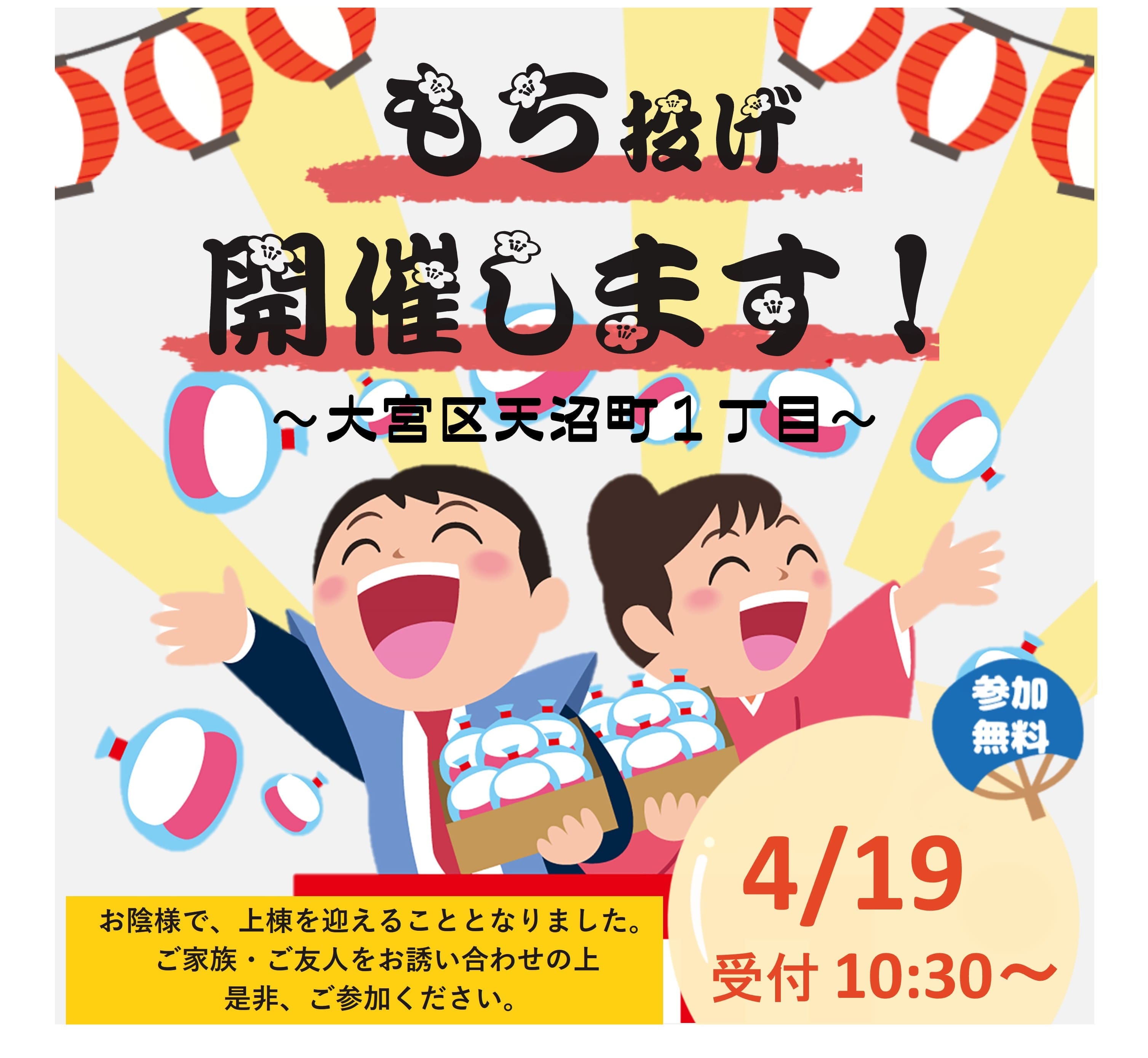 【コモンステージ大宮東分譲住宅】4月19日(日)もち投げイベント開催!