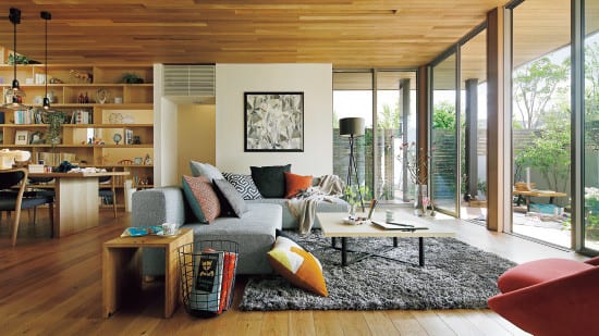 段差のないフラットな平屋の空間は、いつでも家族の気配を感じられる安心感のある暮らしを生み出します。さらに、地面と近い高さから季節を楽しめるリビングや風の通り道を感じられる設計など、自然との共生も大切にするのが積水ハウスの平屋の暮らしです。