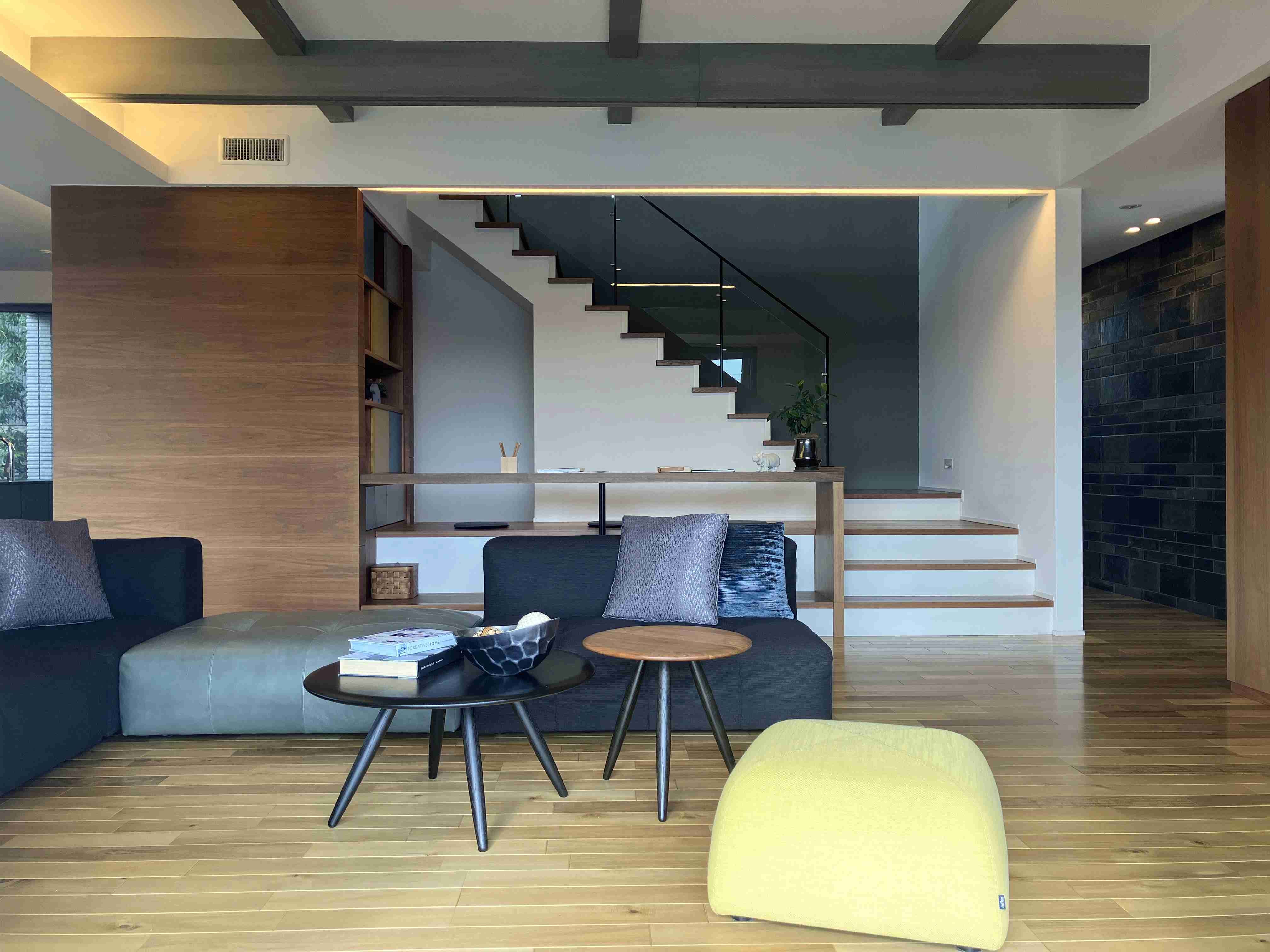 ステージリビングから2階につながる吹抜けや、半個室のプライベート空間など、