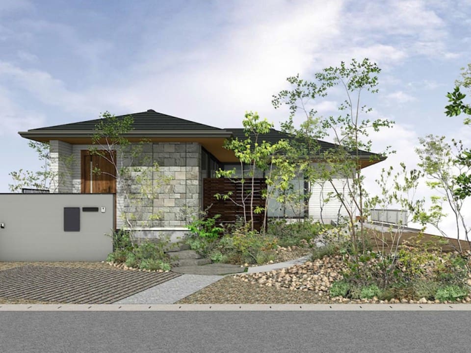 「緑と光に包まれる平屋」