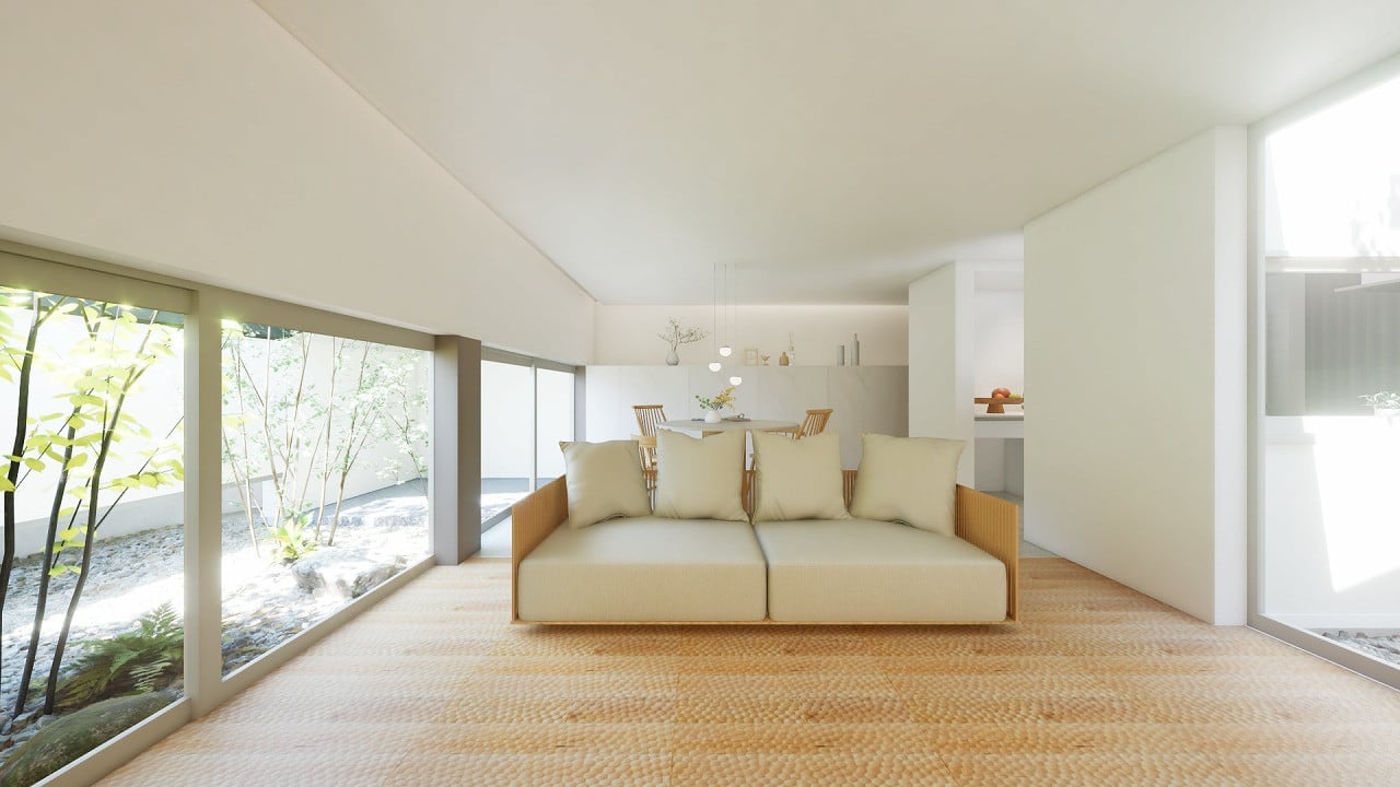 段差のないフラットな平屋の空間は、いつでも家族の気配を感じられる安心感のあるくらしを生み出します。さらに、地面と近い高さから季節を楽しめるリビングや風の通り道を感じられる設計など、自然との共生も大切にするのが積水ハウスの平屋の暮しです。