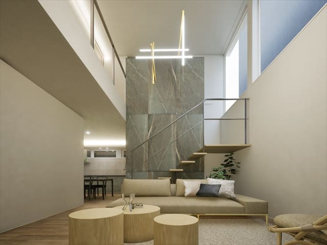 プライバシーを確保しながら開放感を持たせるべく、リビングと2階ホールには吹き抜けから光を取り込みます。