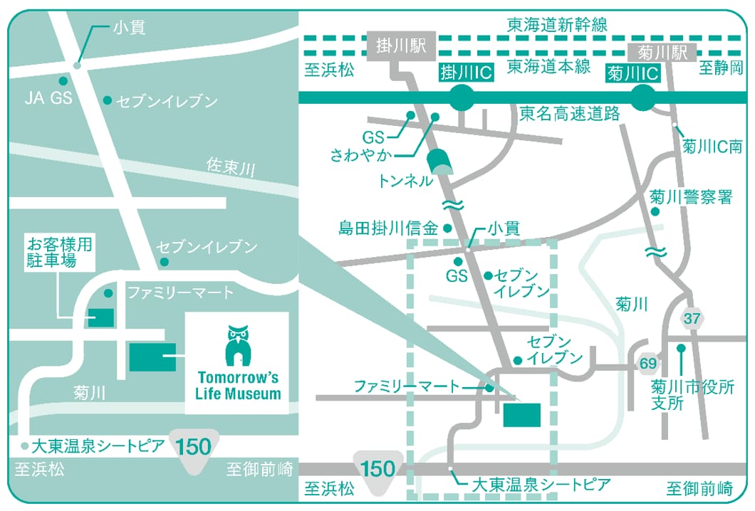 菊川インターよりTomorrow's Life Museumまで約10km